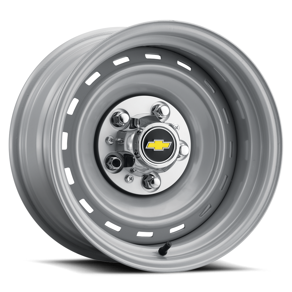 All steel, powder coated Silver. 1971-1987 OE style Rallye wheels offered in 15-inch diameter, 8" or 10" wide, 5x5 (16 window) or 6x5.5 (10 window) bolt patterns. Caps and lug nuts not included. Please check proper fitment before mounting.